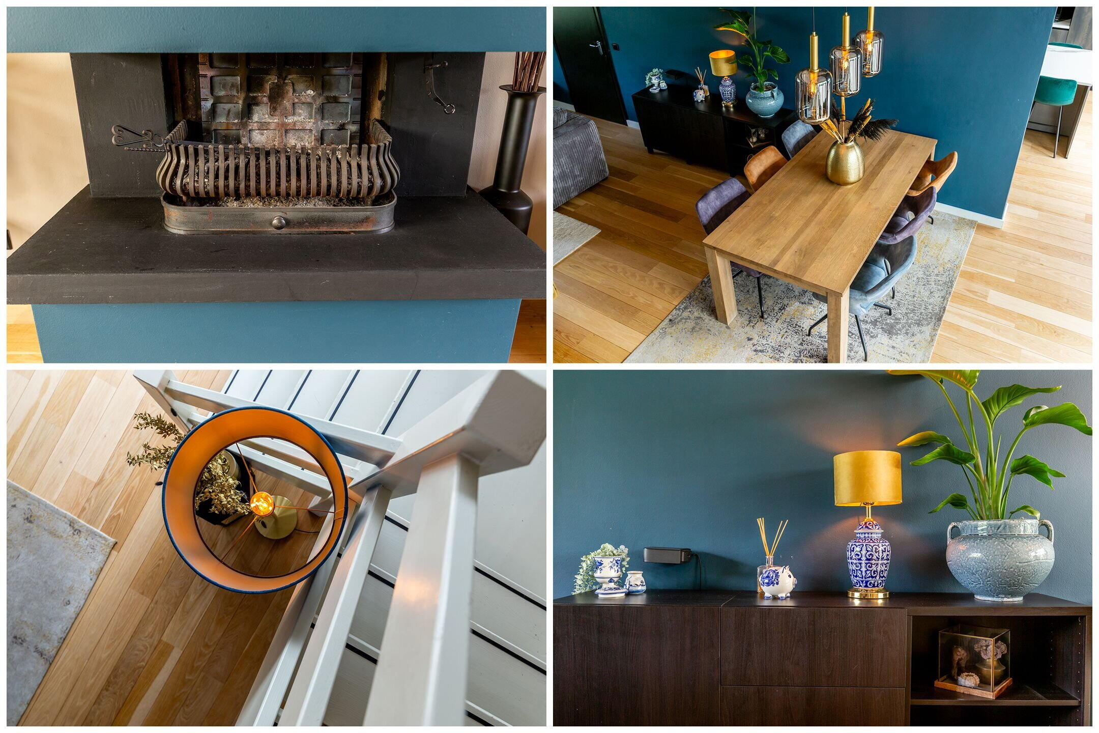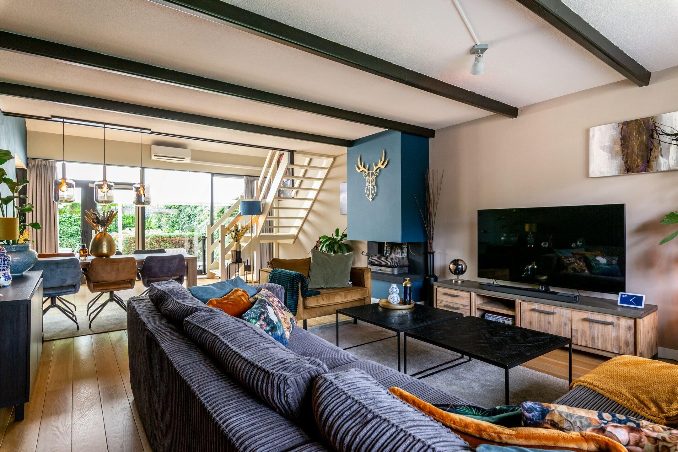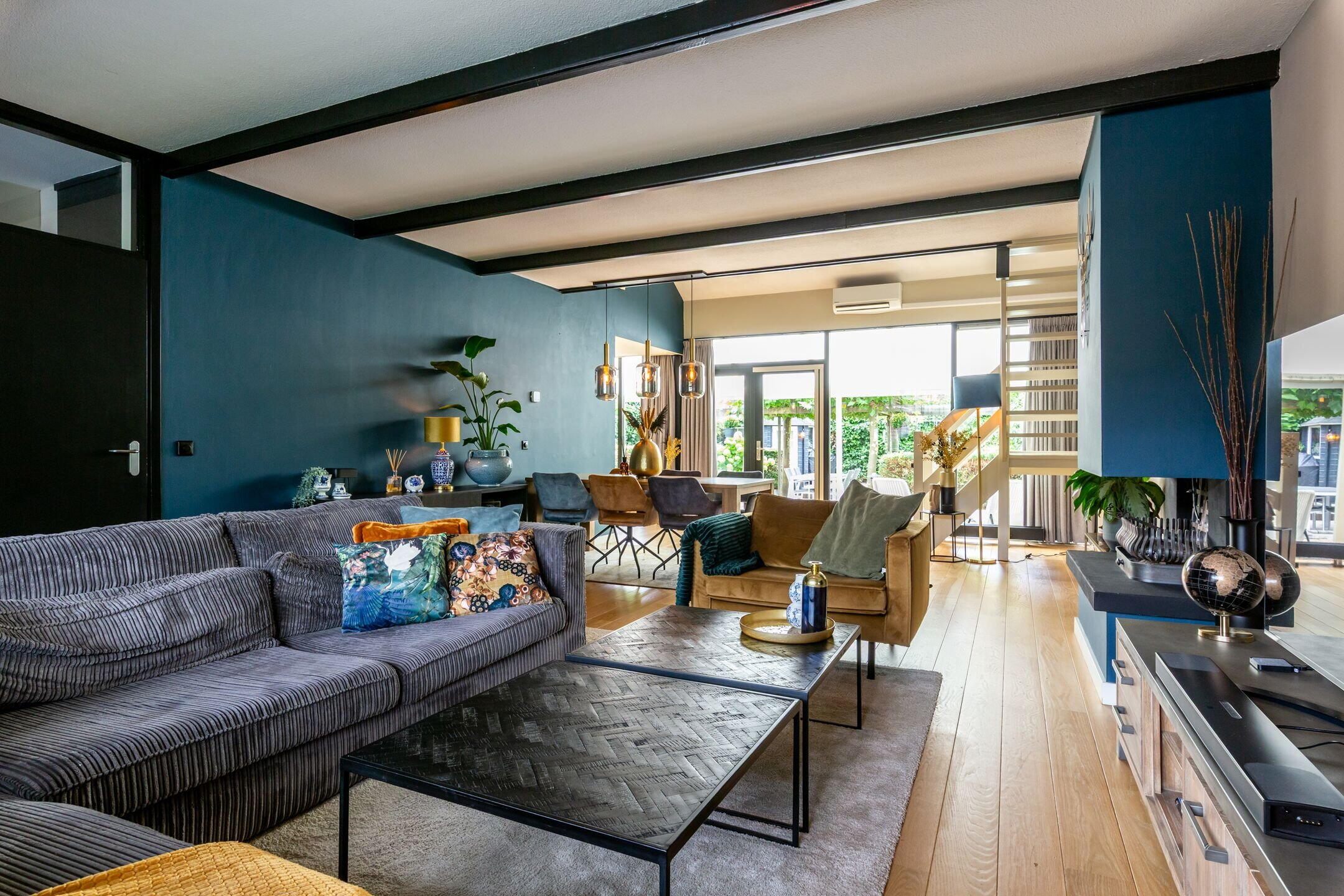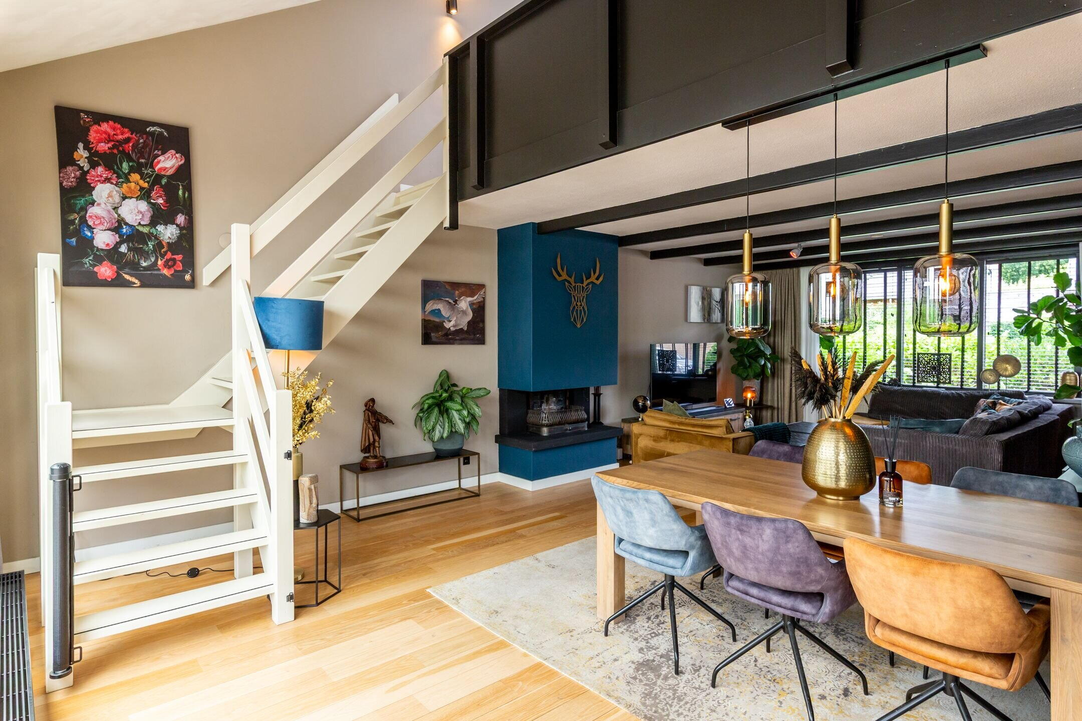Begane grond: Entree; hal met meterkast, toilet met fonteintje en toegang tot de woonkamer; royale doorzon woonkamer van ruim 46m² met openslaande deuren naar de tuin, flinke vrije hoogte door gebruikmaking van de vide, open haard alsmede een open trapopgang naar de verdieping; naast de woonkamer vindt u de open woonkeuken van totaal ongeveer 22,6m²; woonkeuken (2022) met kook-/werkeiland met barelement, welke voorzien is van ondermeer een composieten werkblad, volledig geïntegreerde vaatwasser, inductie kookplaat met geïntegreerde afzuigschouw, oven alsmede een koelkast; via de keuken is de bijkeuken/ berging te bereiken met de wasmachine- en droger aansluiting, verwarming, plavuizen en een sectionaaldeur met loopdeur.